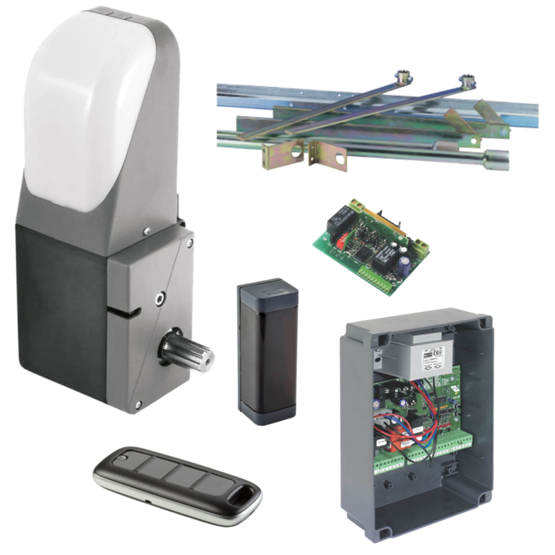 GiBiDi complete kit KITAUTOBOX3000-BA100-RX-2 x TX-IR. Art nr. GBDK3000-BF (NE)Elektromechanische opener op 230Vac voor overheaddeuren met contragewicht van kleine en middelgrote afmetingen, voor residentieel gebruik en gebruik in flatgebouwen.EENVOUDIG TE INSTALLERENDankzij de montagekit op de deur,ā¦
